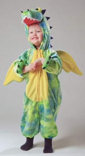 - Fuzzy polyester jumpsuit with plush dragon head sitting on top of attached hood. Features zipper front and elastic cuffs. Fits most children size 3 to 4.- Dragon Green Yellow 3 To 4 Costume