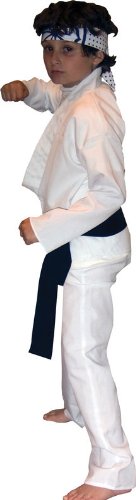 - Child The Karate Kids Deluxe Daniel San Costume- Includes: Miyagi Dojo karate vest with screen printed logo on back, pants and black belt.